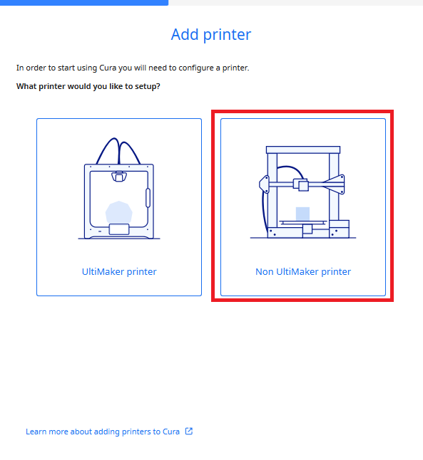 You will be asked to add a printer. Select the "non-ultimaker printer" option as pictured below.